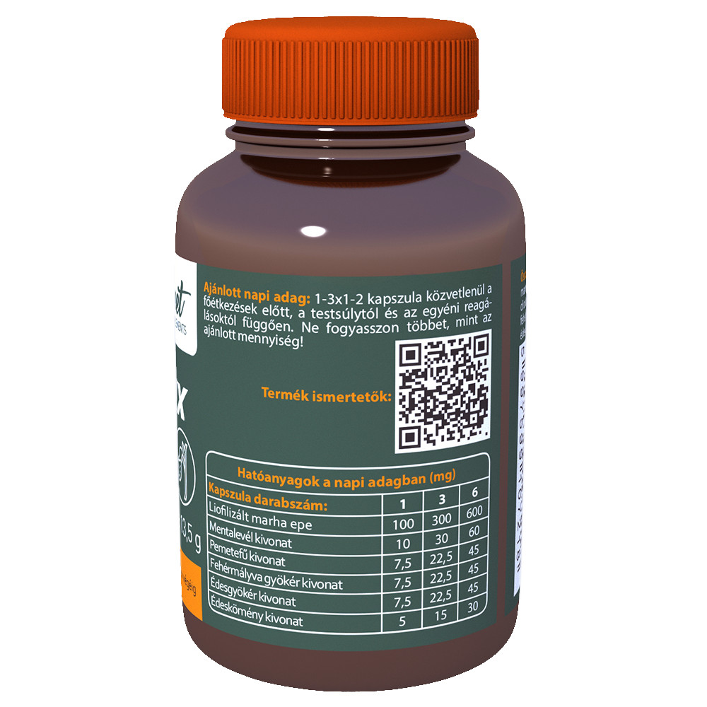 • Komplexné zložky: bylinné extrakty, ako je mäta pieporná, koreň slez biely, jablčník obyčajný, sladké drievko a fenikel, dopĺňajú pôsobenie žlčových kyselín. Môžu podporovať vylučovanie žlče zo žlčníka, pomáhať znižovať nadúvanie, udržiavať zdravý tráviaci trakt a prispievať k normálnej činnosti pečene a žlčníka.